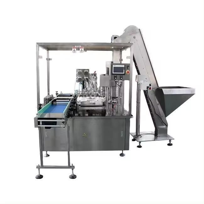 The syrup filling machine uses piston pump volumetric metering, offering high filling accuracy, stable performance, low bottle damage rate, and a compact footprint. It features electromagnetic vibration and centrifugal capping, integrating both filling and sealing processes. The entire sugar filling and capping process is completed by the machine. All parts that come into contact with the product are made of 316L stainless steel or PTFE. The machine includes functions such as no-bottle-no-filling and variable frequency speed regulation. It is primarily used for filling, pressing, and capping various oral and syrup liquids, and is widely used in the food, chemical, and scientific research industries.