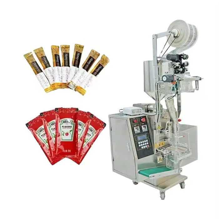 1.The sauce sachet packing machine enables fully automatic operation, completing feeding, bag forming, filling, measuring, sealing, cutting, counting, coding, and product discharge in one continuous process.
